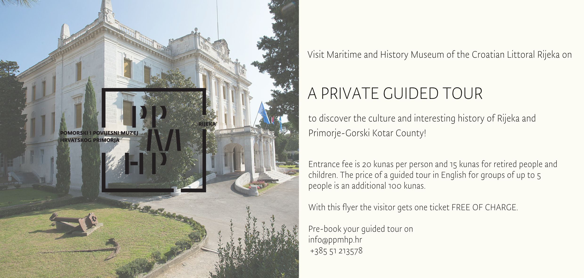 Pre-book your guided tour at info[at]ppmhp.hr or +385 51 213578