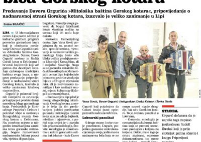 U subotu, 22. rujna 2018. s početkom u 18.00 sati, Memorijalni centar Lipa priredit će kulturno-glazbeni program posvećen goranskom kraju. Program će obuhvatiti predavanje Davora Grgurića naziva “Mitološka baština Gorskog kotara” dok će članovi Udruge ”Glazbeni susreti Gorskog kotara” predstaviti svoju tradiciju sviranja na dijatoničkim harmonikama – heligonkama.