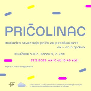 Za sve koji još nisu upoznali Pričolinca, riječ je o radionici na kojoj se – uz određenu povijesnu temu usko vezanu uz baštinu Primorsko-goranske županije i grada Rijeke – kreiraju priče za djecu predškolske dobi. Cilj je radionice upoznati djecu s određenom povijesnom temom, na temelju koje djeca sama kreiraju priču. Zabava i neograničene količine mašte su zagarantirani!
