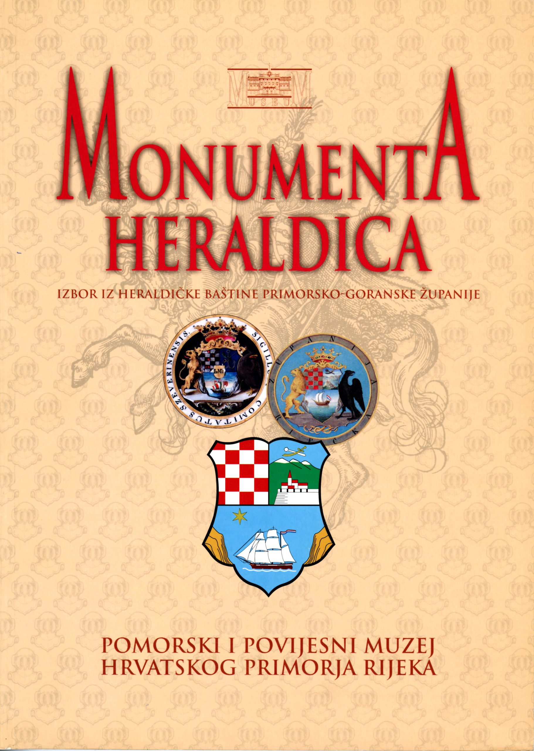 Katalog koji predstavlja izbor iz heraldičke baštine Primorsko-goranske županije pratio je izložbu postavljenu u Pomorskom i povijesnom muzeju Hrvatskog primorja Rijeka 2002. godine. Sadržaj je vezan uz osnivanje Severinske županije u 18. stoljeću te prati heraldičke oznake ove ustrojne jedinice od vladavine carice Marije Terezije, preko njezinih nasljednika sve do suvremene Primorsko-goranske županije, prateći promijene imena kao i granica. Obrađene su i heraldičke oznake vladara, gradski grbovi, grbovi plemstva i crkvenih dostojanstvenika. Osobito vrijedni su opisi grbova obitelji koje su živjele na ovom području te crkvenih dostojanstvenika koji su ovdje djelovali. Opisi su obogaćeni slikovnim prilozima.