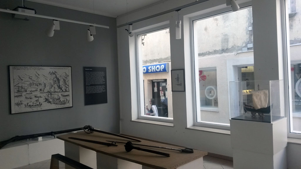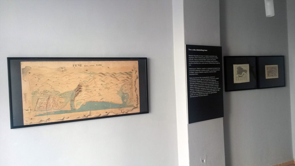 Izložba Trn u oku venecijanskog lava, autorice Tea Perinčić, kazuje o Rijeci i njezinoj okolici u vrijeme dominacije Mletačke Republike kojoj je do kraja 15. stoljeća pošlo za rukom uspostaviti dugotrajnu vlast na istočnoj obali Jadrana – od Kopra do Boke Kotorske. Samo je područje Rijeke i njezine šire okolice ostalo izuzeto iz pandža mletačkog lava, a pod upravom habsburškog dvoglavog orla. Habsburgovci i Mlečani, susjedi su s dugotrajnim tenzijama koje povremeno eskaliraju u otvorene sukobe. Ti se odnosi prenose i na Rijeku i njezino mletačko susjedstvo. Rijeka kao komuna čije se gospodarstvo zasniva na posredničkoj trgovini, gdje se razmjenjuju proizvodi iz zaleđa (slovenskog i hrvatskog) s onim preko mora (talijanske jadranske pokrajine), konkurencija je Veneciji koja cijeli svoj uspjeh zasniva na održavanju trgovačkih veza duž Jadrana kojeg smatra svojim zaljevom (Golfo di Venetia). Stoga je i razumljivo nastojanje Mlečana da pod svoju vlast podvrgnu i taj jedini preostali dio istočnojadranske obale. U tome ih sprečavaju Habsburgovci koji su gospodari Rijeke, ali i sami Riječani koji nikada nisu gajili političke sklonosti prema Prevedroj Republici. Venecija međutim uspijeva tijekom rata protiv Kambrejske lige, 1508. godine, osvojiti Rijeku. No, mletačka vladavina nije dugo trajala jer su već u proljeće 1509. istjerani iz grada, a iako su kasnije Rijeku u nekoliko navrata razarali više je nikada nisu uspjeli zauzeti. Nasuprot ratovanjima i političkim neprijateljstvima, Rijeka je s Venecijom i njezinim provincijama održavala stalne trgovačke veze. Utjecaj mletačke trgovine na Jadranu očitovao se i u uporabi mletačkog novca, što je smetalo austrijskoj vlasti, ali čemu nisu mogli konkurirati svojom valutom. S trgovinom, tekao je i kulturni utjecaj u svakodnevnom životu (moda, književnost, običaji), a zbog dominacije mletačkog jezika posebice u trgovini i pomorstvu isti je prihvaćen i u Rijeci. Na ovoj će izložbi tako biti prikazani mnogi predmeti mletačke provenijencije iz fundusa Pomorskog i povijesnog muzeja Hrvatskog primorja Rijeka koji ukazuju na čvrste kulturne veze između Rijeke i Venecije.